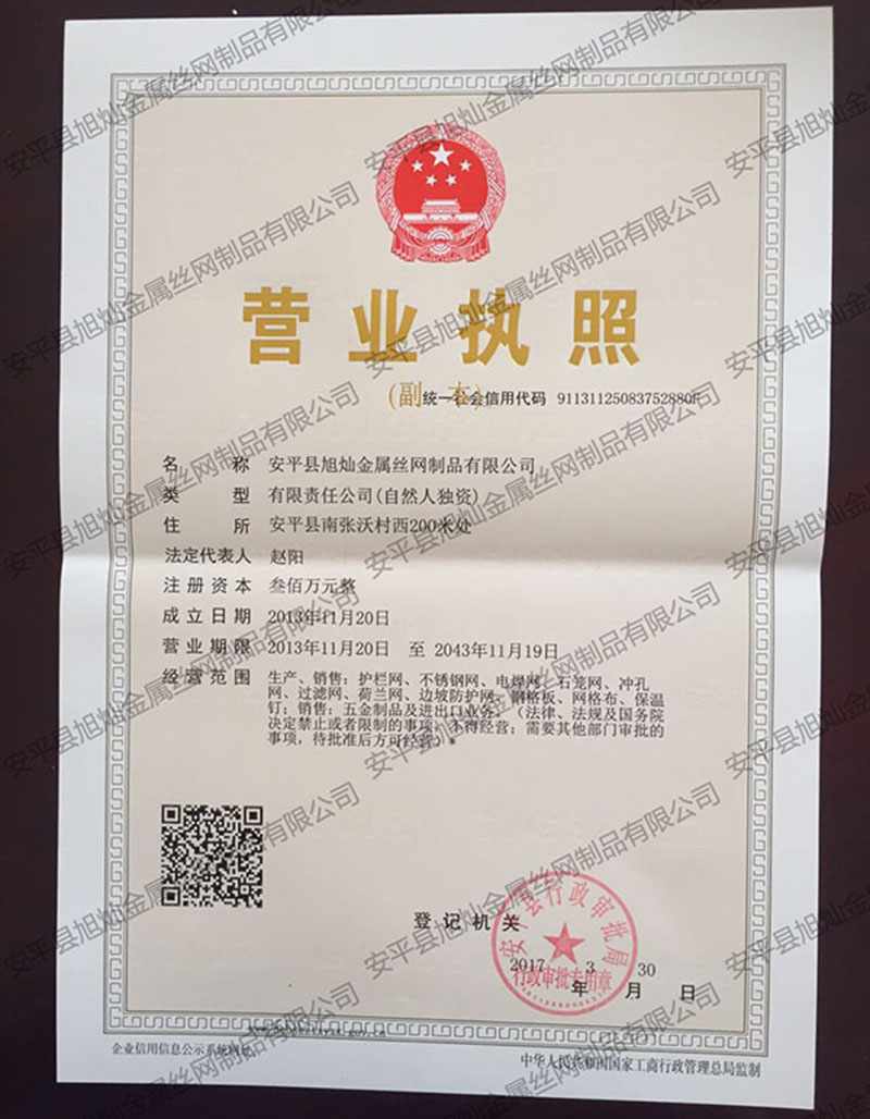安平縣旭燦金屬絲網(wǎng)制品有限公司